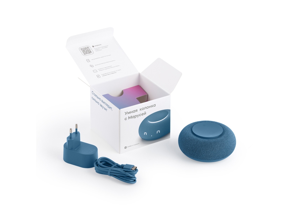 Умная колонка VK Капсула Мини с голосовым помощником Марусей, морской синий