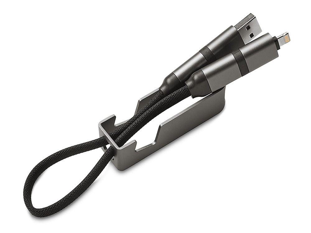 Универсальный зарядный кабель с подставкой Ironwood N2 — ваш надёжный помощник в любой ситуации. Он объединяет в себе функции мощного зарядного кабеля и удобной подставки для смартфона — идеально для офиса, кафе или дома. Благодаря входному разъёму 2в1 (USB-C и USB-A) и выходному 2в1 (USB-C и Lightning), вы заряжаете любые современные устройства. Поддержка быстрой зарядки до 45 Вт обеспечивает молниеносное восполнение энергии даже у мощных гаджетов. Корпус выполнен из прочного переработанного алюминия по стандарту RCS — стильный, экологичный и долговечный. Компактный дизайн позволяет легко поместить в сумке, рюкзаке, кармане или закрепить на связке ключей. Поставляется в индивидуальном конверте из переработанного картона.
