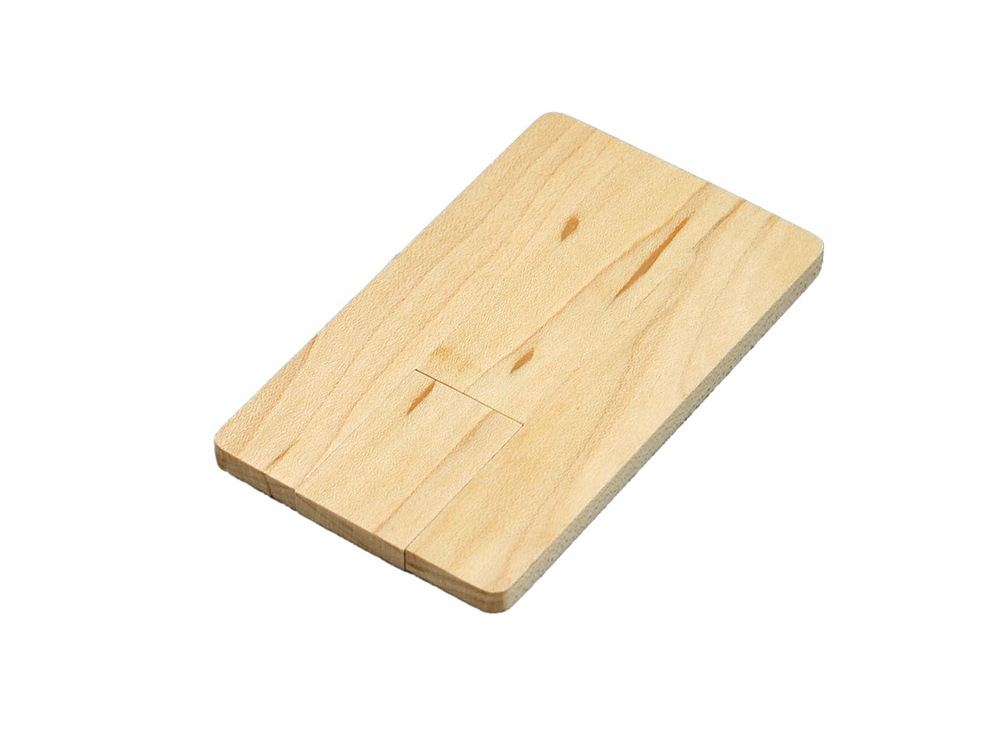 Флеш-накопитель в виде деревянной карточки с выдвижным механизмом, объем памяти 32 Гб. Деревянный корпус.