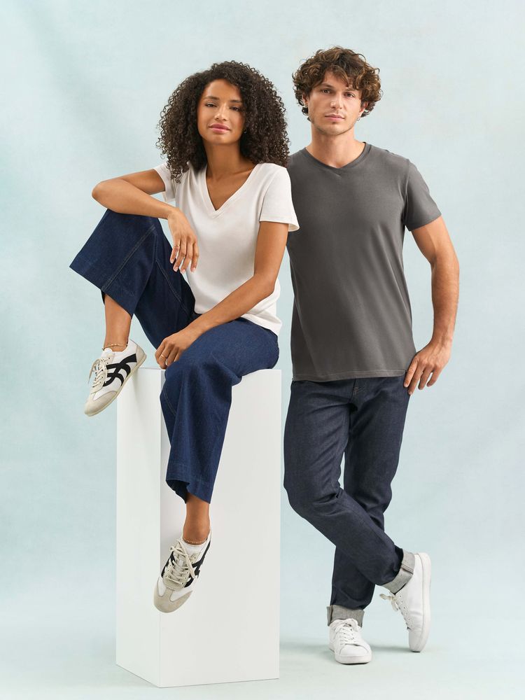 Женская футболка Regent с V-образным вырезом. Такой вырез снова актуален: он визуально удлиняет шею, подчеркивает линию ключиц и добавляет образу легкости.