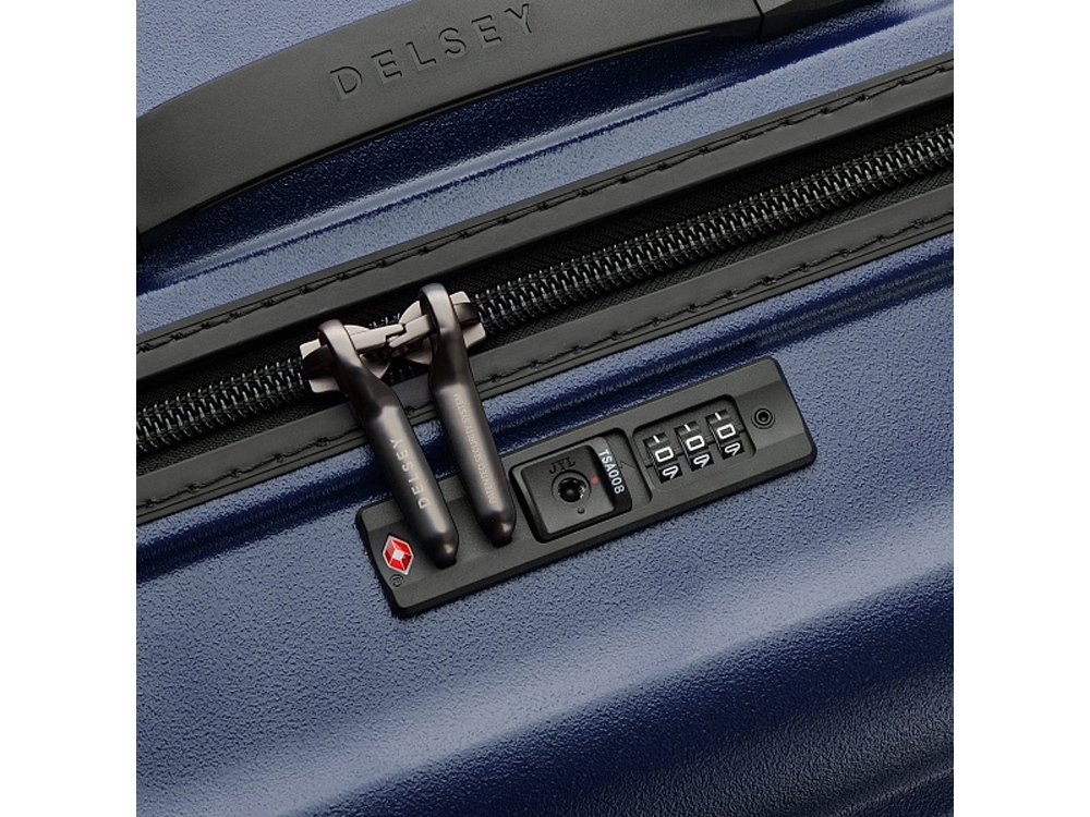 — Для оптимальной безопасности каждый чемодан оснащен запатентованной системой застежки DELSEY PARIS: молнией SECURITECH®. Застежка, разработанная в 3 раза более прочная, чем обычная застежка. Также оснащен кодовым замком TSA, чемодан можно запереть с помощью личного кода, позволяя органам транспортной безопасности (TSA) проверять ваш багаж, используя уникальный ключ, зарезервированный для них.