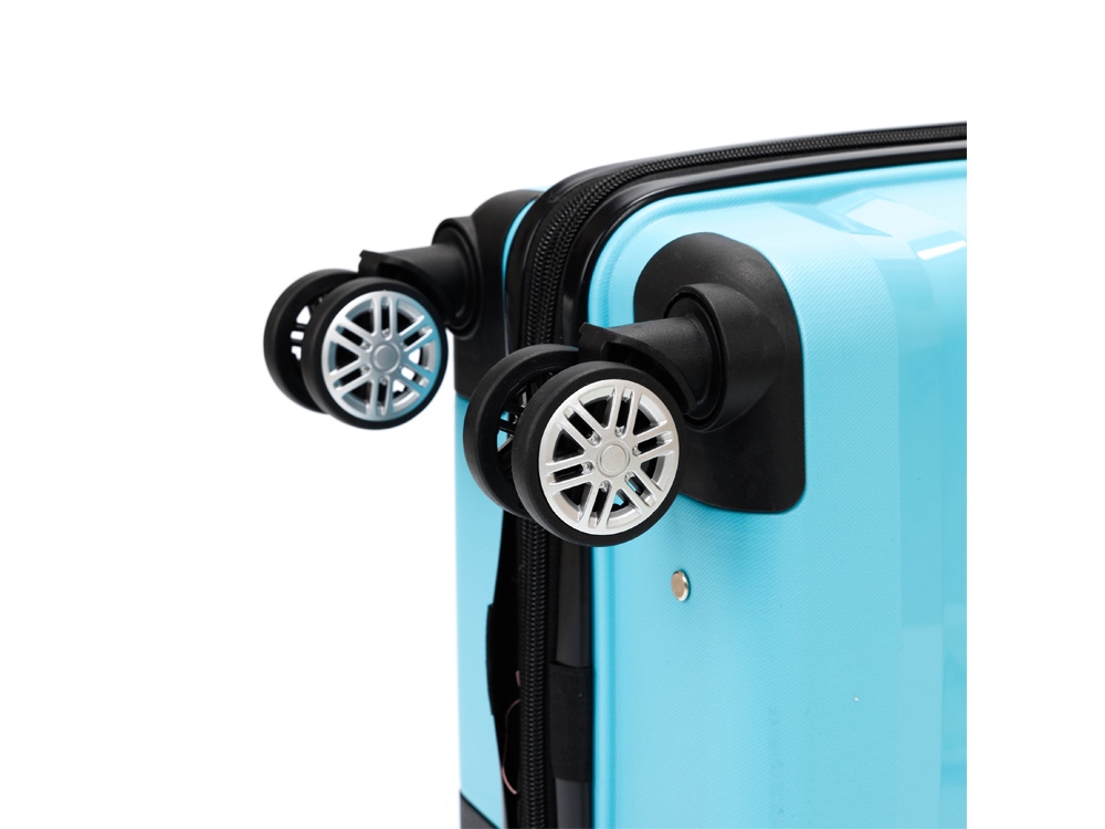 Каждый чемодан из серии В ОТПУСК оборудован удобной ручкой и удивительно легкими двойными колесами, что обеспечивает максимальную маневренность и комфорт во время путешествий.