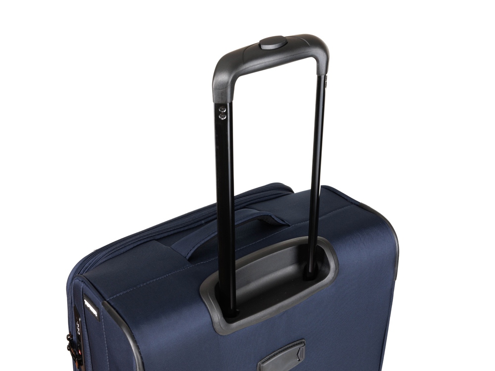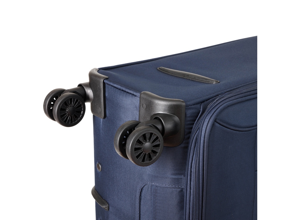 Легкая регулируемая телескопическая алюминиевая ручка и система из четырёх двойных колёс, вращающихся на 360 градусов, обеспечивает мягкий ход и свободное движение во всех направлениях.