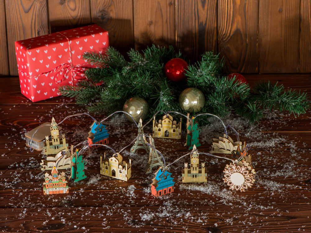 Ёлочная гирлянда с лампами в подарочной коробке Достопримечательности мира