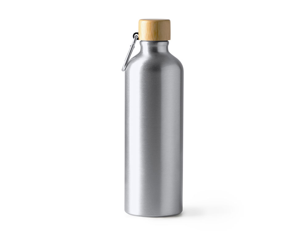 Алюминиевая бутылка с карабином для удобной транспортировки и бамбуковой пробкой. Объем 800 мл.