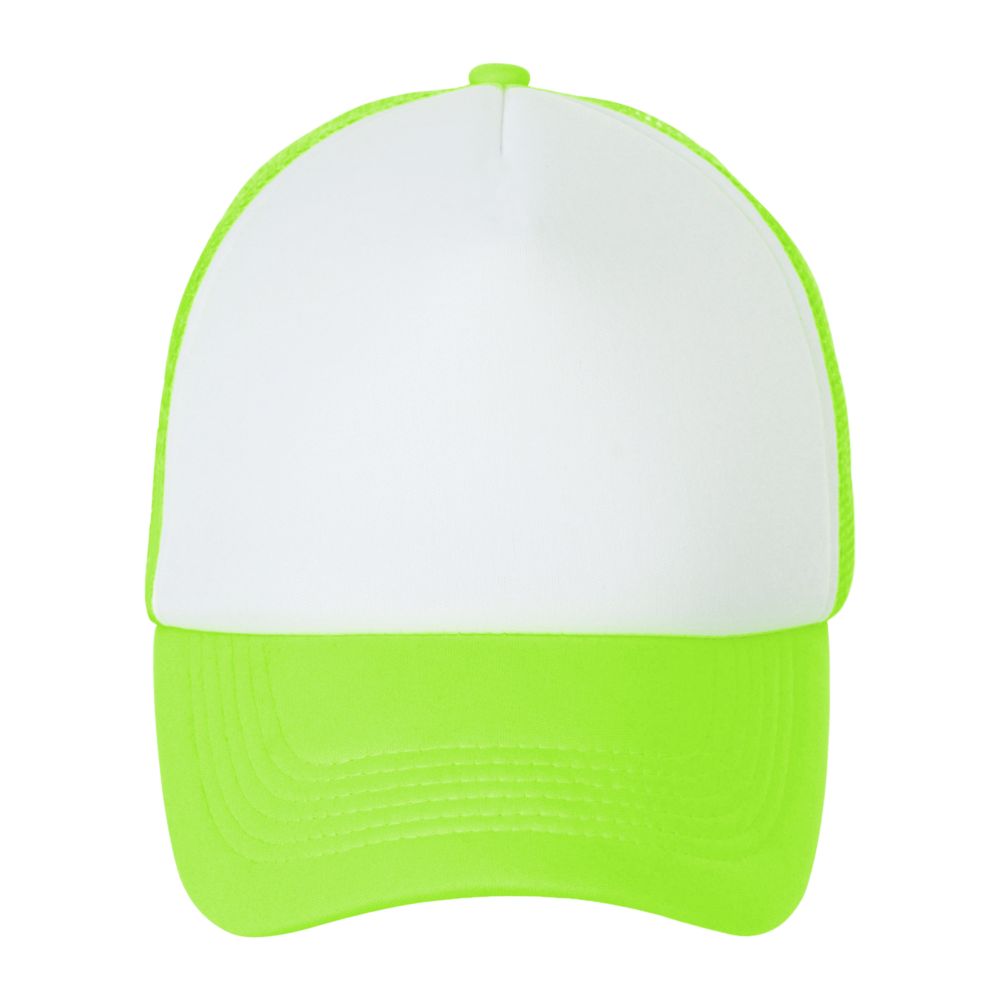 Бейсболка с 5 клиньями из сетки. Поролон в переднем клине (5 мм) и козырьке (3 мм). Регулируемая пластиковая застежка.