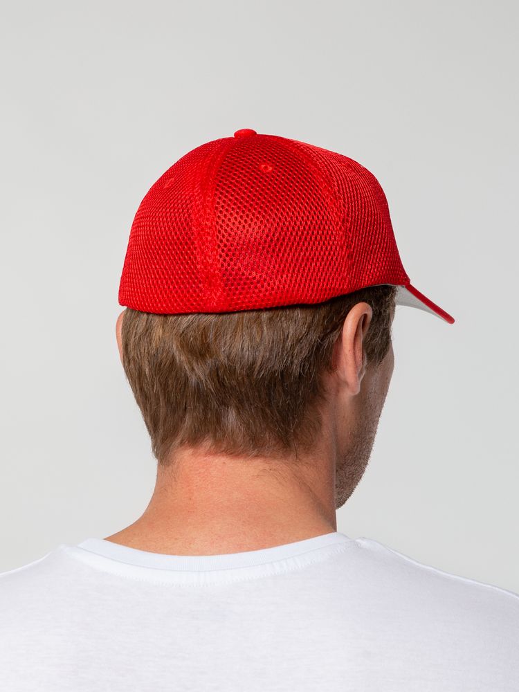 - Однотонная бейсболка из двух видов ткани: козырек и лобовые клинья из гладкого полотна, клинья на боках и на тыльной стороне из спортивной сетки