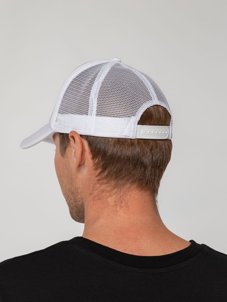 Стандартная модель с 5 клиньями без лобового шва в нестандартном исполнении. Передний клин и козырек выполнены из полиэстера с наполнителем из поролона, боковые и задние клинья — из сетки. Размер регулируется с помощью пластиковой застежки.