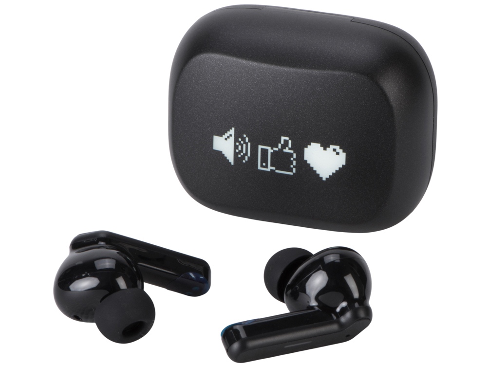 Беспроводные наушники с шумоподавлением c подсветкой лого Lites, черные (гравировка)