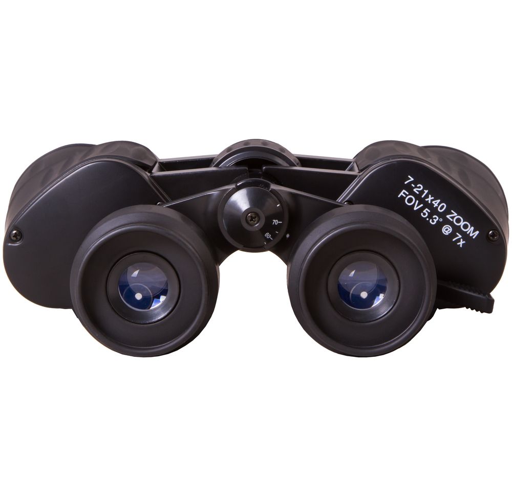 Модель с переменной кратностью: увеличение варьируется от 7x до 21x, поэтому бинокль подходит для изучения объектов на разном расстоянии. Оптическая система с призмами Порро и полное просветляющее покрытие на линзах существенно повышают качество картинки.