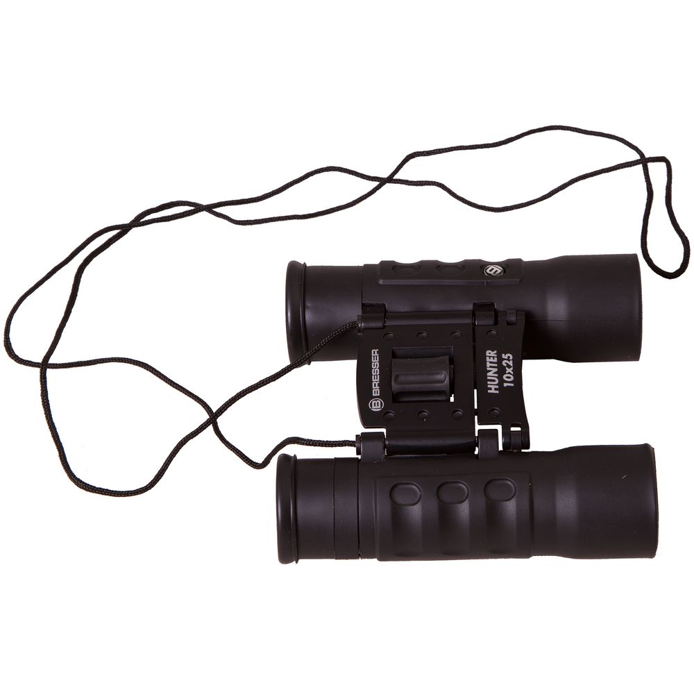 Бинокль создан на базе roof-призм, сделанных из стекла BK-7 c многослойным просветлением. Увеличение — 10x, диаметр объективов — 25 мм. Минимальное расстояние фокусировки — 5 м. Бинокль имеет функцию подстройки межзрачкового расстояния и диоптрийной коррекции окуляров. Встроенная система центральной фокусировки позволит быстро настроить резкость.В комплект входит чехол из полиэстера.