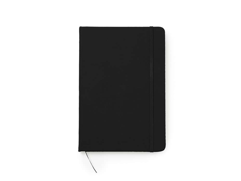 Блокнот формата А5 в обложке из искусственной кожи. Закладка и резинка. 100 листов в линейку.
