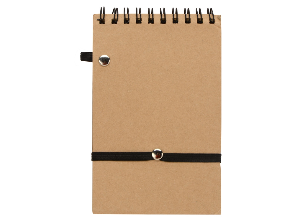 Оригинальный блокнот с обложкой из пробки и картона, а также блоком из переработанной бумаги. Петля для ручки и горизонтальная резинка расширяют функциональность.