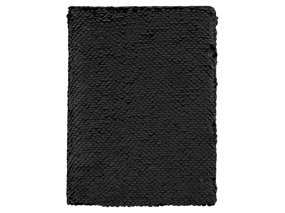 Модная обложка с пайетками черного цвета имеет скругленные углы.