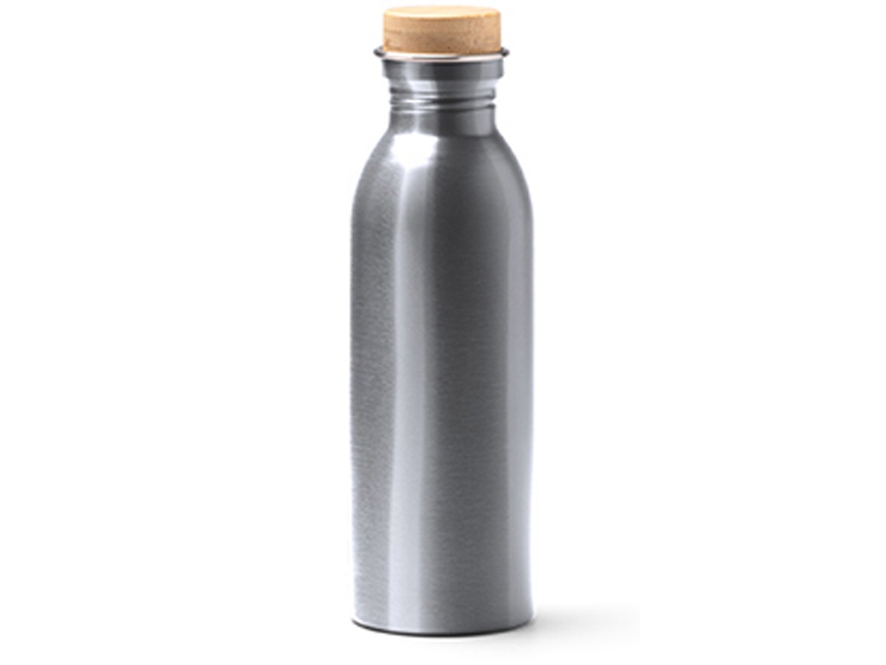 Бутылка из переработанной нержавеющей стали 304 с матовой отделкой и бамбуковой крышкой. Емкость 650 мл.