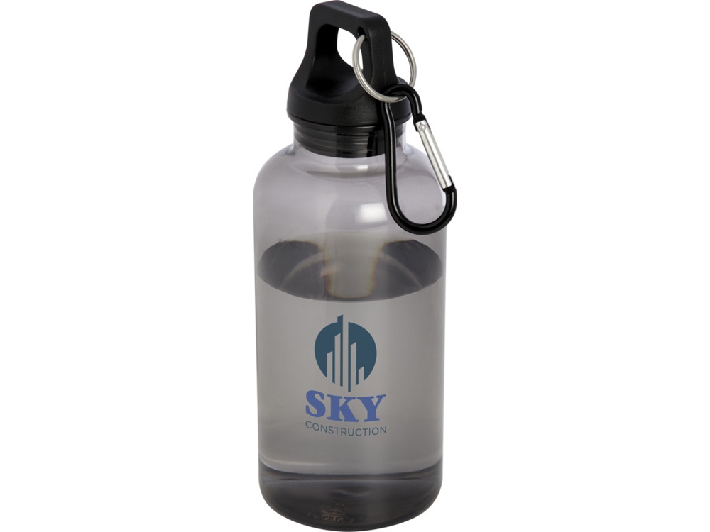 Бутылка для воды с карабином Oregon из переработанной пластмассы, 400 мл — Черный