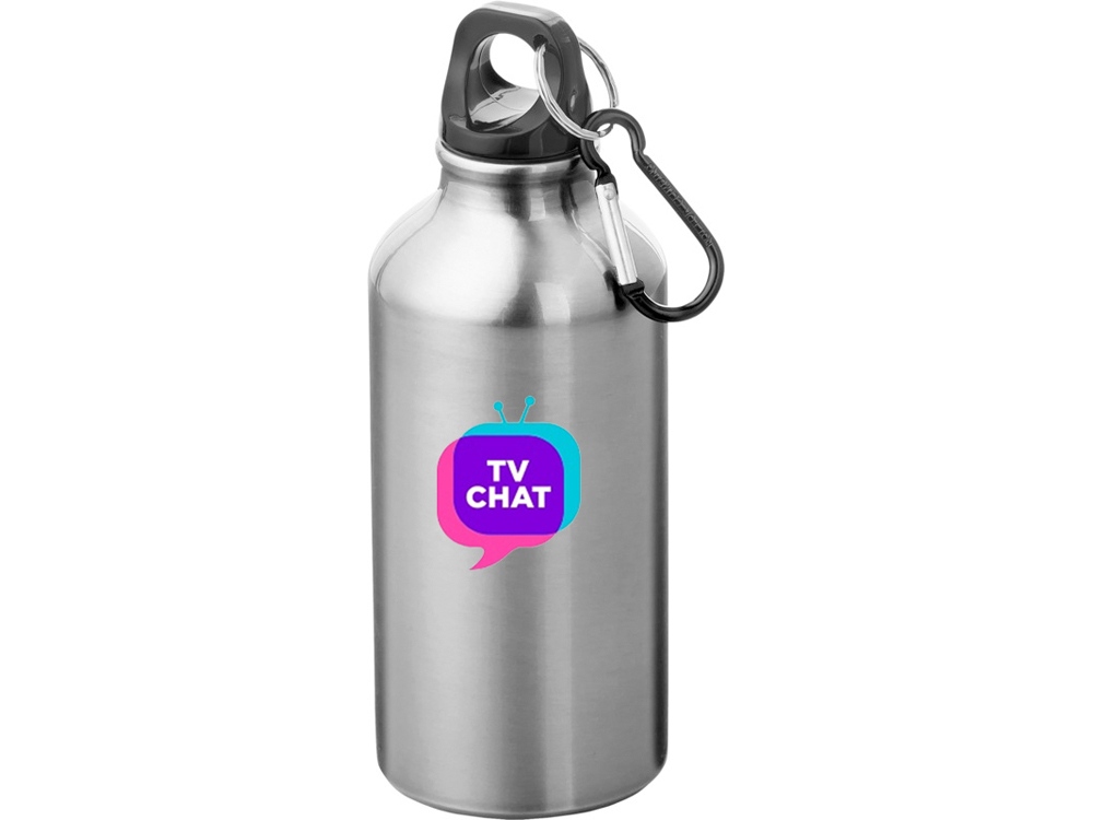 Бутылка для питья Oregon с карабином. Бутылка с одинарными стенками со съемной крышкой. Карабин не предназначен для лазанья. Объем – 400 мл. BPA Free Алюминий.