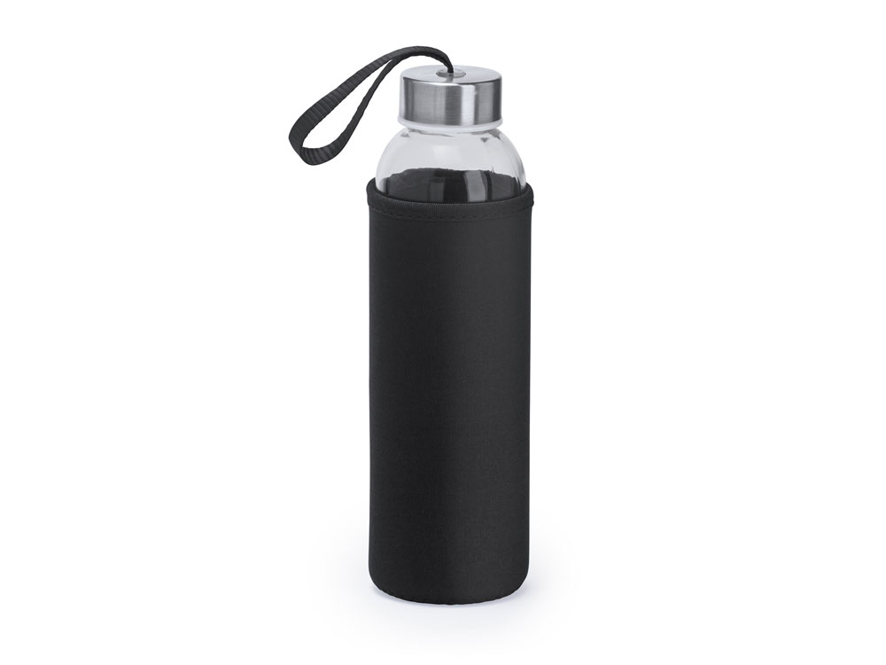 Бутылка стеклянная CAMU в чехле из неопрена, 500 мл, прозрачный/черный