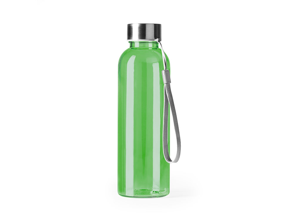 Бутылка из РПЭТ с полупрозрачным цветным корпусом. Емкость 600 мл. Ремешок для переноски в комплекте