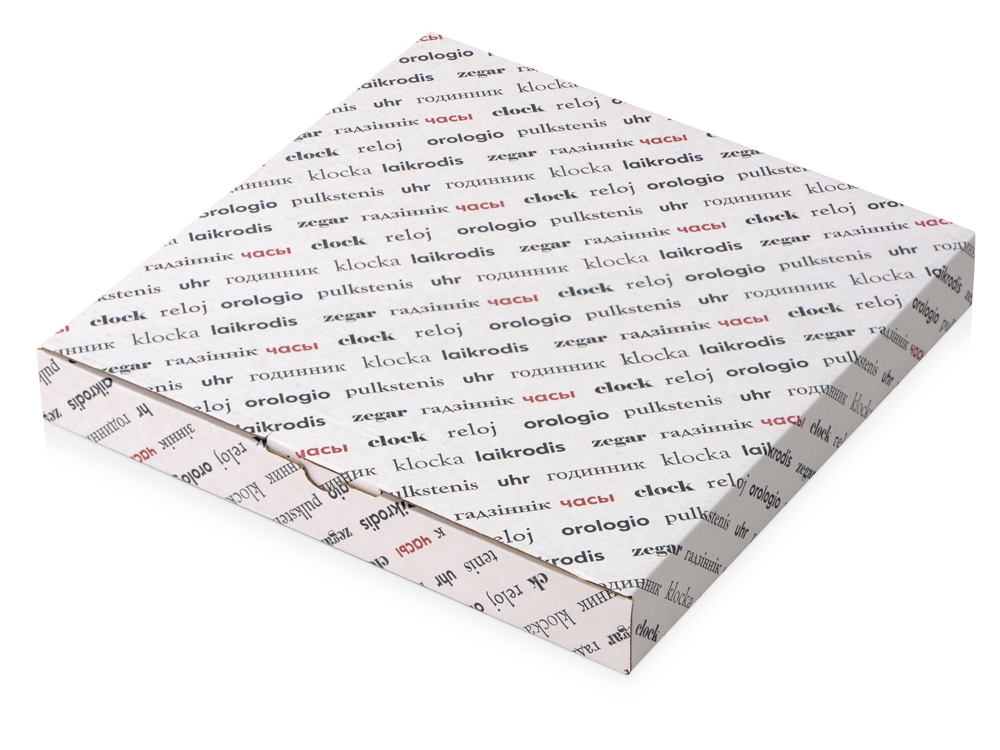 Часы предназначены для вставки циферблата (диаметром 205 мм) с печатью по индивидуальному дизайну. Часы поставляются в разобранном виде. В состав комплекта входит: корпус с механизмом, крышка, стрелки и коробка. Часовая и минутная стрелки — черного цвета, секундная — красного цвета.