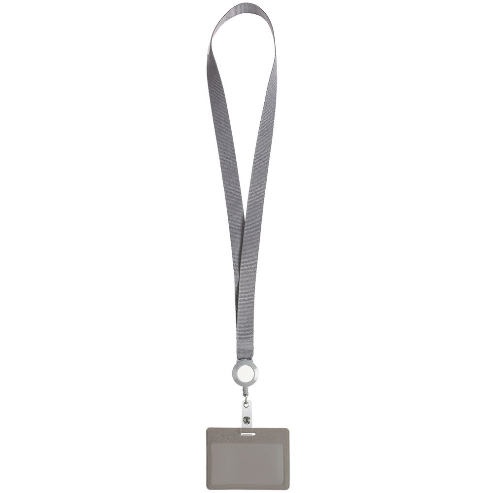 Чехол для карточки с лентой и ретрактором Devon, серый с белым