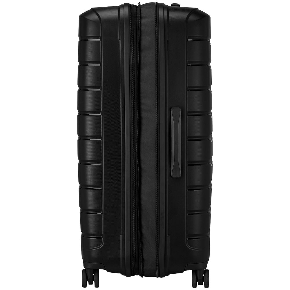 • Чемодан с 2 отделениями: одно отделение с сетчатым разделителем и прижимными ремнями, а второе оснащено перегородкой на молнии с двумя карманами