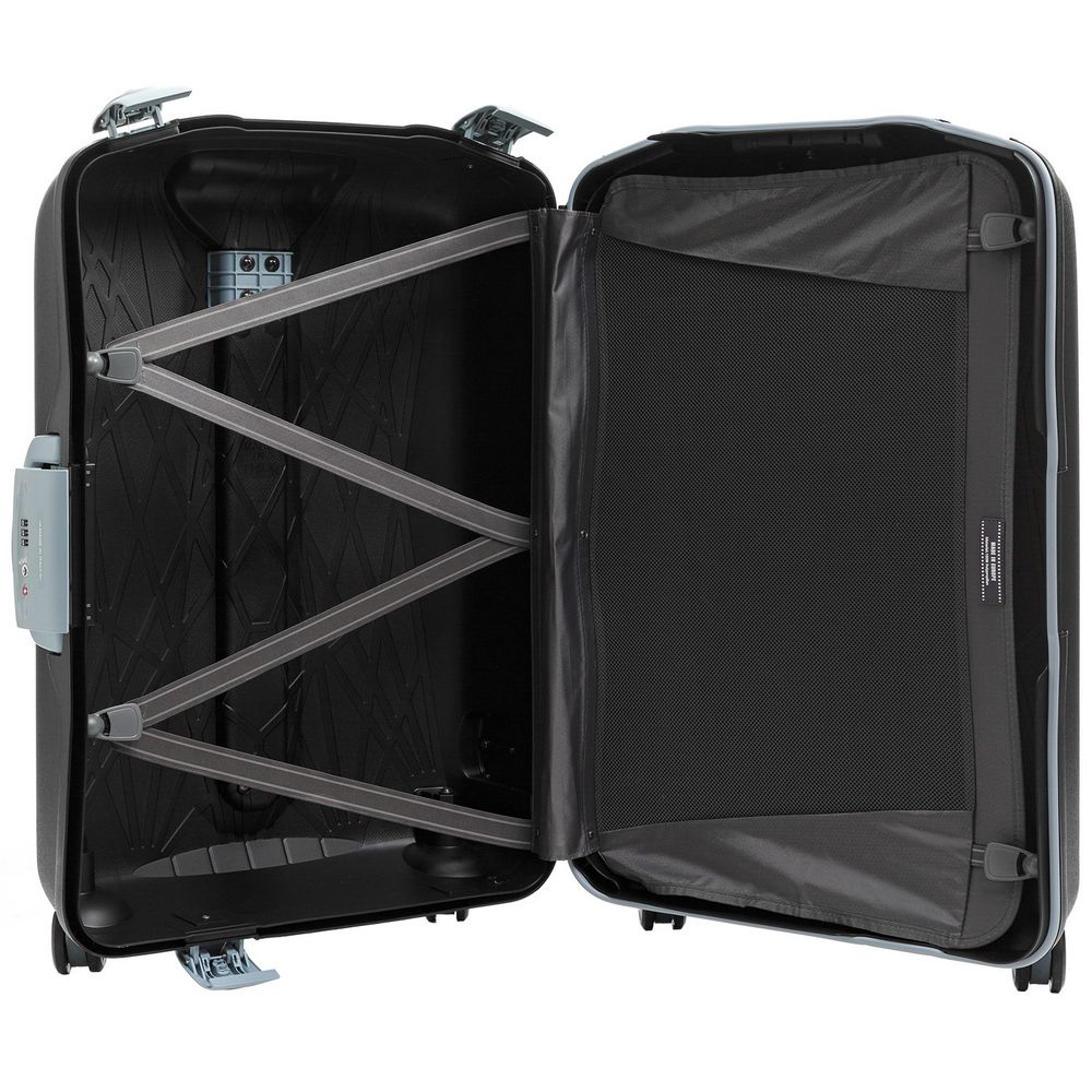 Корпус из жесткого полипропилена устойчив к ударам и царапинам, обладает высокой прочностью и позволяет бережно перевозить даже хрупкие вещи. Средний чемодан создан для поездок на 1-2 недели.