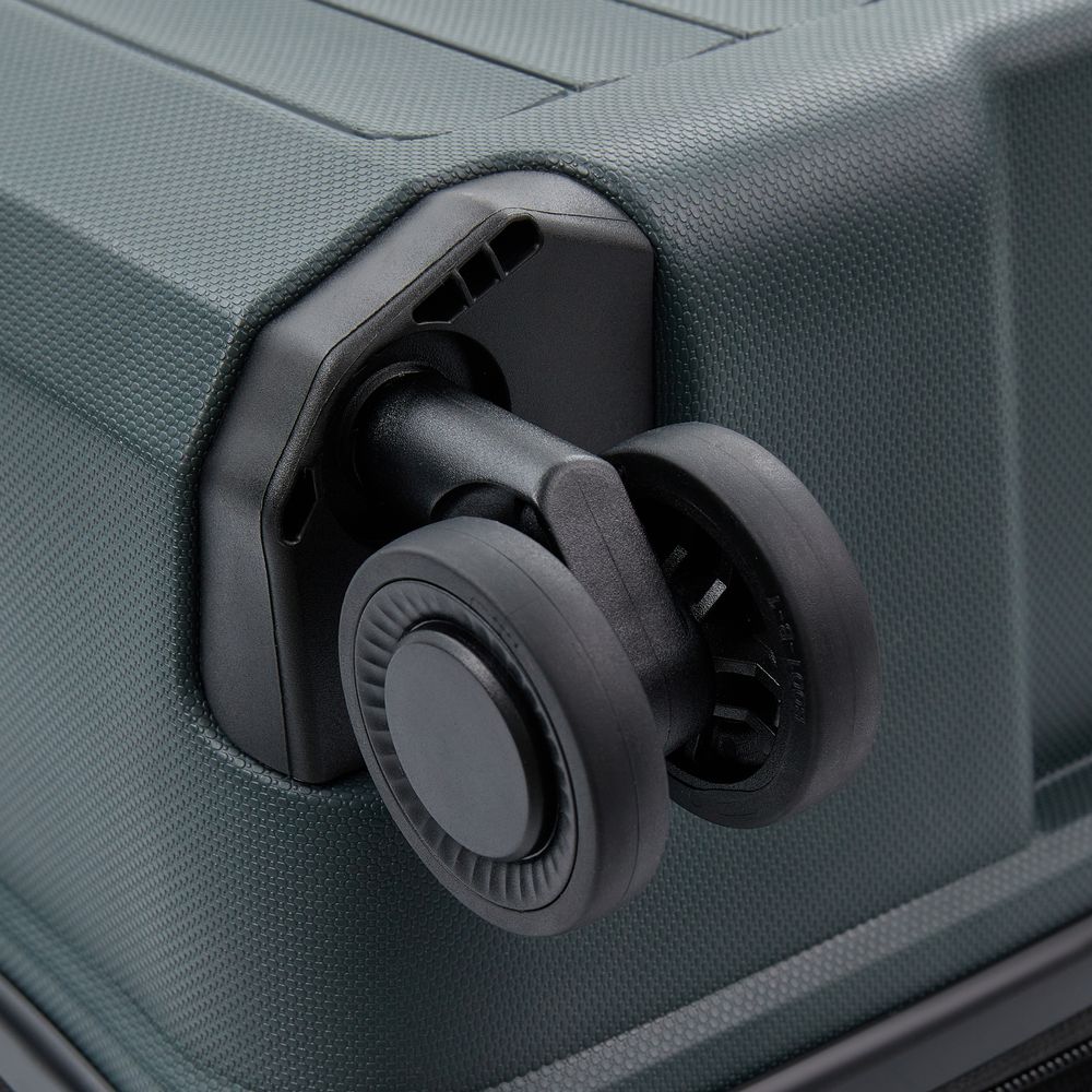 • Блок крепления колеса встроен в корпус чемодана, что обеспечивает лучшую устойчивость к внешнему воздействию
