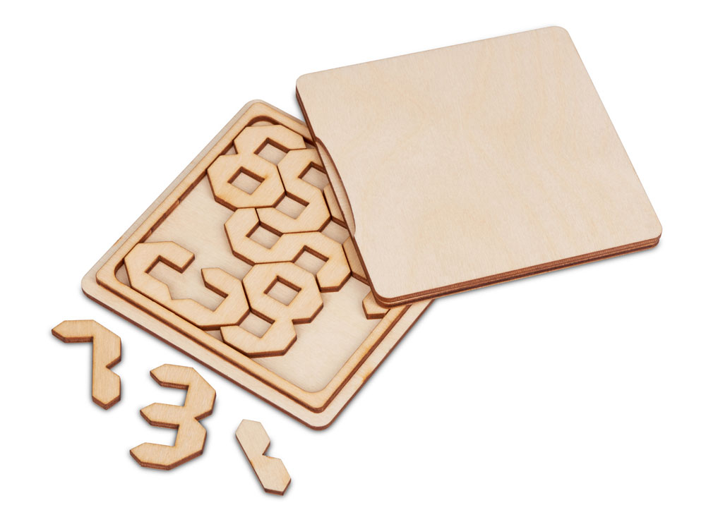 Деревянная головоломка Цифры — прекрасный способ занять себя в дороге. Корпус изготовлен из берёзовой фанеры и используется как игровое поле, не занимая много места в сумке.