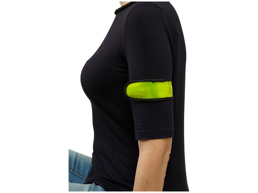 Диодный браслет Olymp. Регулируемый эластичный диодный браслет для видимости на улице с кнопкой для переключения режимов мигания, быстрого мигания, обычного света или выключения. Батарейки в комплекте. ПВХ.