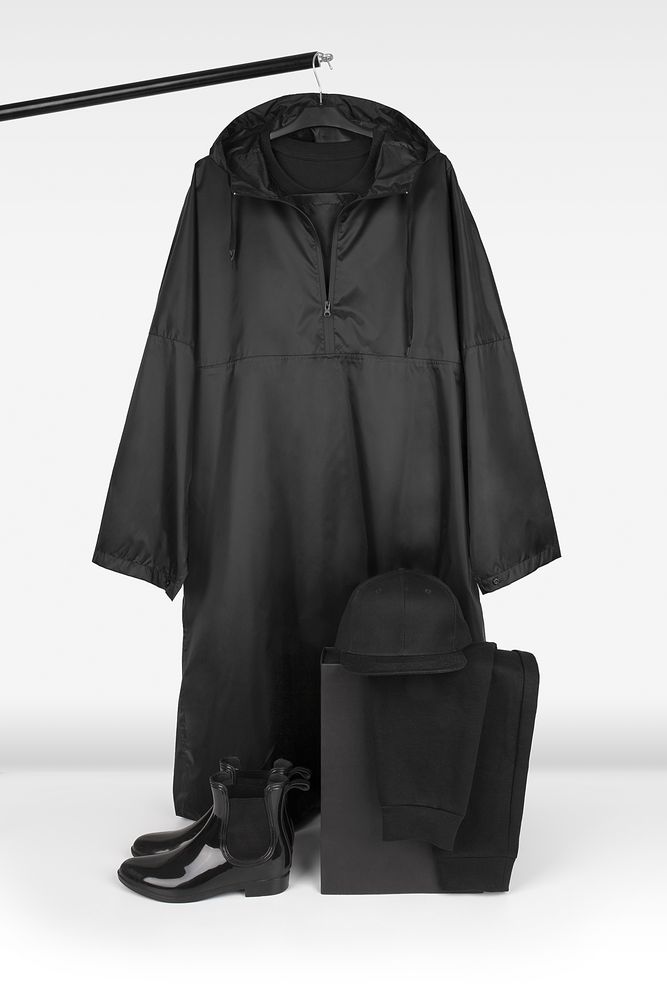Дождевик-анорак с капюшоном из ткани таффета с полиуретановой пропиткой для защиты от сильного дождя.