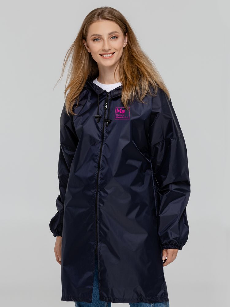 Плащ-дождевик из ткани таффета на молнии с капюшоном. Складывается в мешочек — удобно брать с собой.
