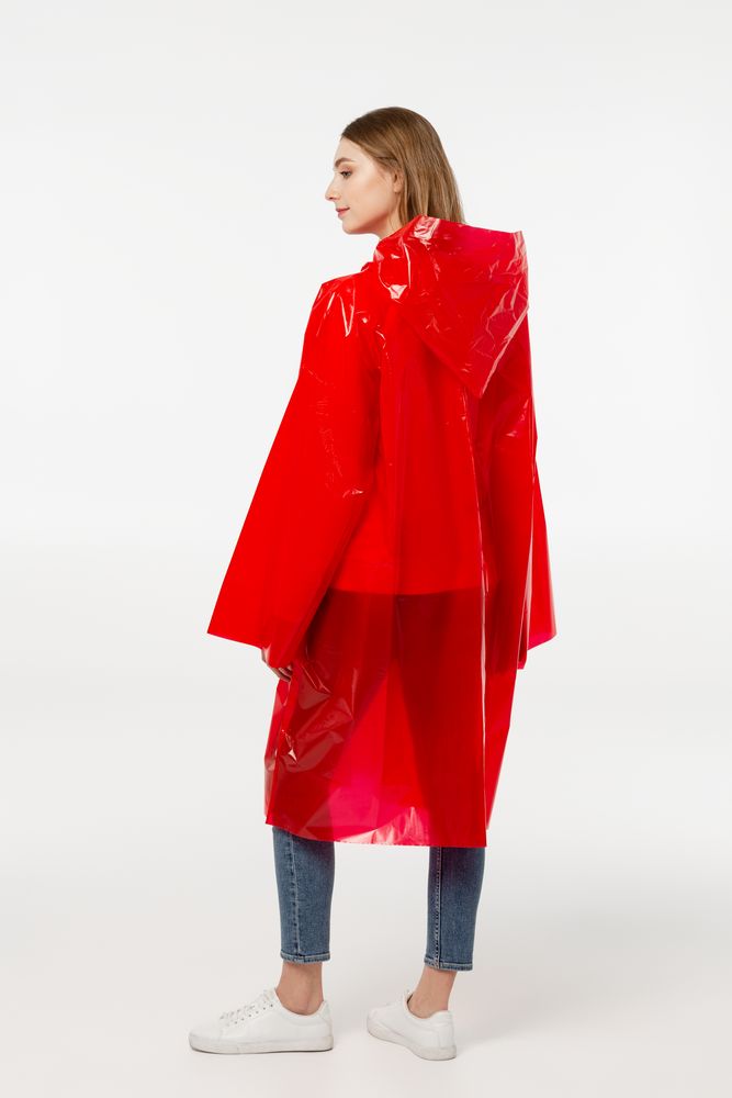 Дождевик-плащ с капюшоном и длинным рукавом из плотного полиэтилена высокого давления (ПВД).