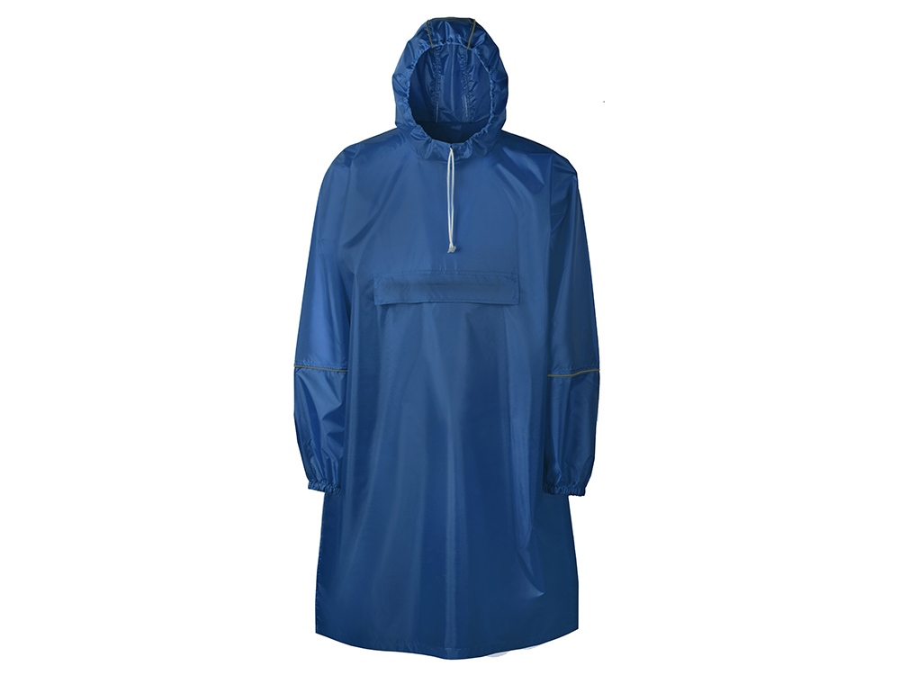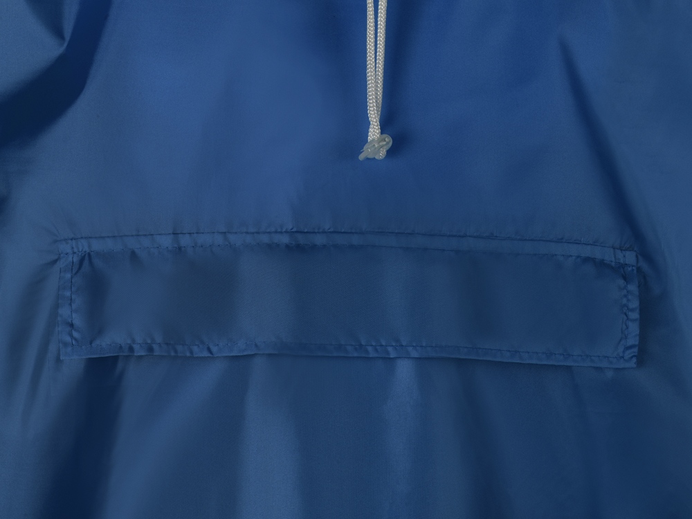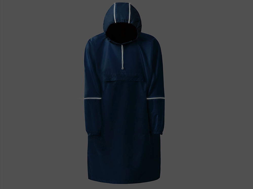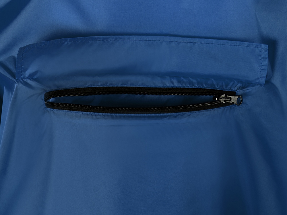 Дождевик – пончо прямого силуэта. Нагрудный карман плаща закрывается на молнию, которая дополнительно защищена клапаном, а еще в него можно полностью убрать дождевик. На дне кармана — ручка-петелька, которая в сложенном виде может использоваться для подвешивания.