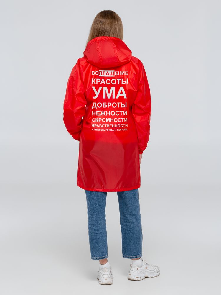 Серия дождевиков с принтом «Воплащение» для тех, кто и в дождливую погоду готов преображаться и шутить. Ум и скромность, красота, а может быть порок, или все это вместе? «Воплащение всего» — плащ для победителей, которым либо все, либо ничего!