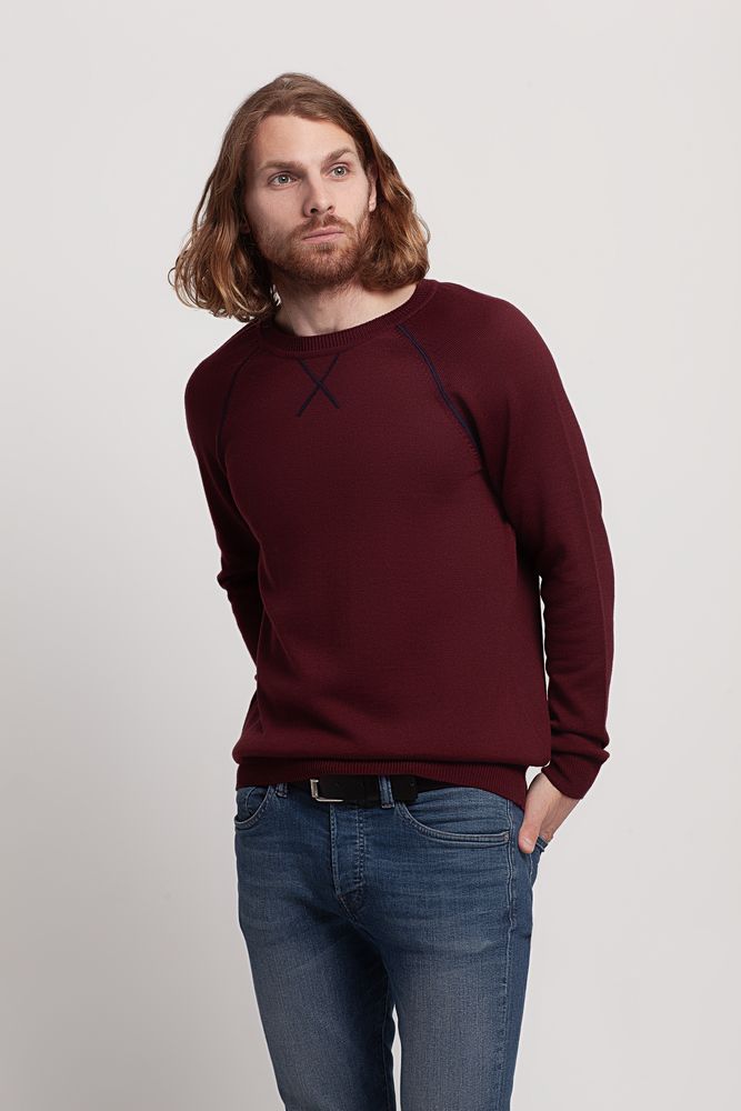 Джемпер Stitch с контрастной отделкой, бордовый с синим