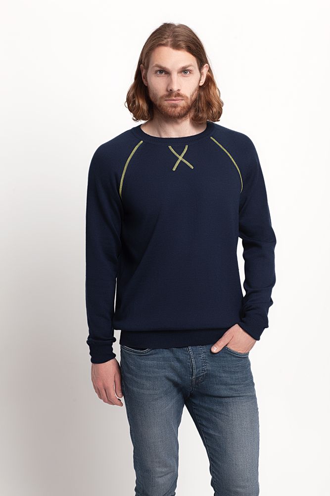 Джемпер Stitch с контрастной отделкой, синий с зеленым