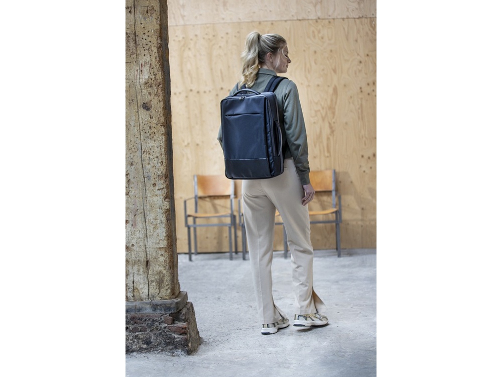 Расширяемый и прочный рюкзак для ноутбука Expedition Pro, сертифицированный GRS, — идеальный выбор для профессионалов, которым постоянно приходится совмещать путешествие и работу. Рюкзак имеет увеличенную вместимость, эквивалентную сумке-тележке для ручной клади, и изготовлен из водоотталкивающего RPET в сочетании с премиальными элементами из ПУ и подкладкой из RPET. Он имеет специальное отделение для 17-дюймового ноутбука и отделение для планшета, расширяемое отделение в стиле тележки для хранения одежды, встроенный герметичный большой карман для туалетных принадлежностей и просторное переднее отделение с множеством организационных карманов внутри и снаружи. Модель имеет мягкие регулируемые лямки, встроенный карман для карточек, петлю для солнцезащитных очков, формованную подкладку из воздушной сетки, а также мягкую ручку, обеспечивающую максимальный комфорт и удобство при переноске. Объем: 35 литр. Не содержит ПВХ. GRS certified recycled polyester.