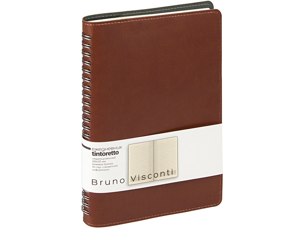 Недатированный ежедневник формата А5 Tintoretto ТМ Bruno Visconti — практичное решение для тех, кто любит ежедневники на пружине. Полускрытый гребень позволяет держать ежедневник открытым на столе и комфортно вести записи. 272 страницы блока произведены из превосходной бежевой бумаги плотностью 70 г/кв.м, а неброская линовка каждой страницы позволяет не отвлекаться на лишние детали. Гибкую обложку из искусственной кожи украшает отстрочка декоративной нитью по краю.