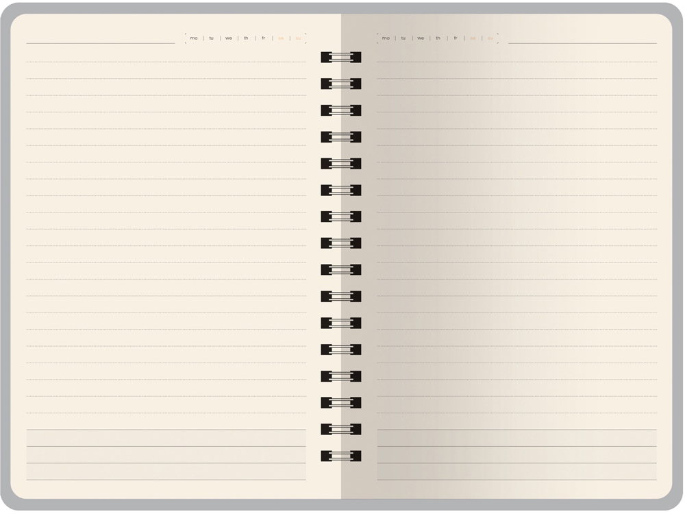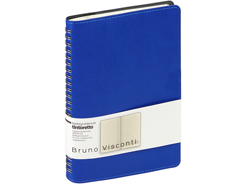 Недатированный ежедневник формата А5 Tintoretto ТМ Bruno Visconti — практичное решение для тех, кто любит ежедневники на пружине. Полускрытый гребень позволяет держать ежедневник открытым на столе и комфортно вести записи. 272 страницы блока произведены из превосходной бежевой бумаги плотностью 70 г/кв.м, а неброская линовка каждой страницы позволяет не отвлекаться на лишние детали. Гибкую обложку из искусственной кожи украшает отстрочка декоративной нитью по краю.