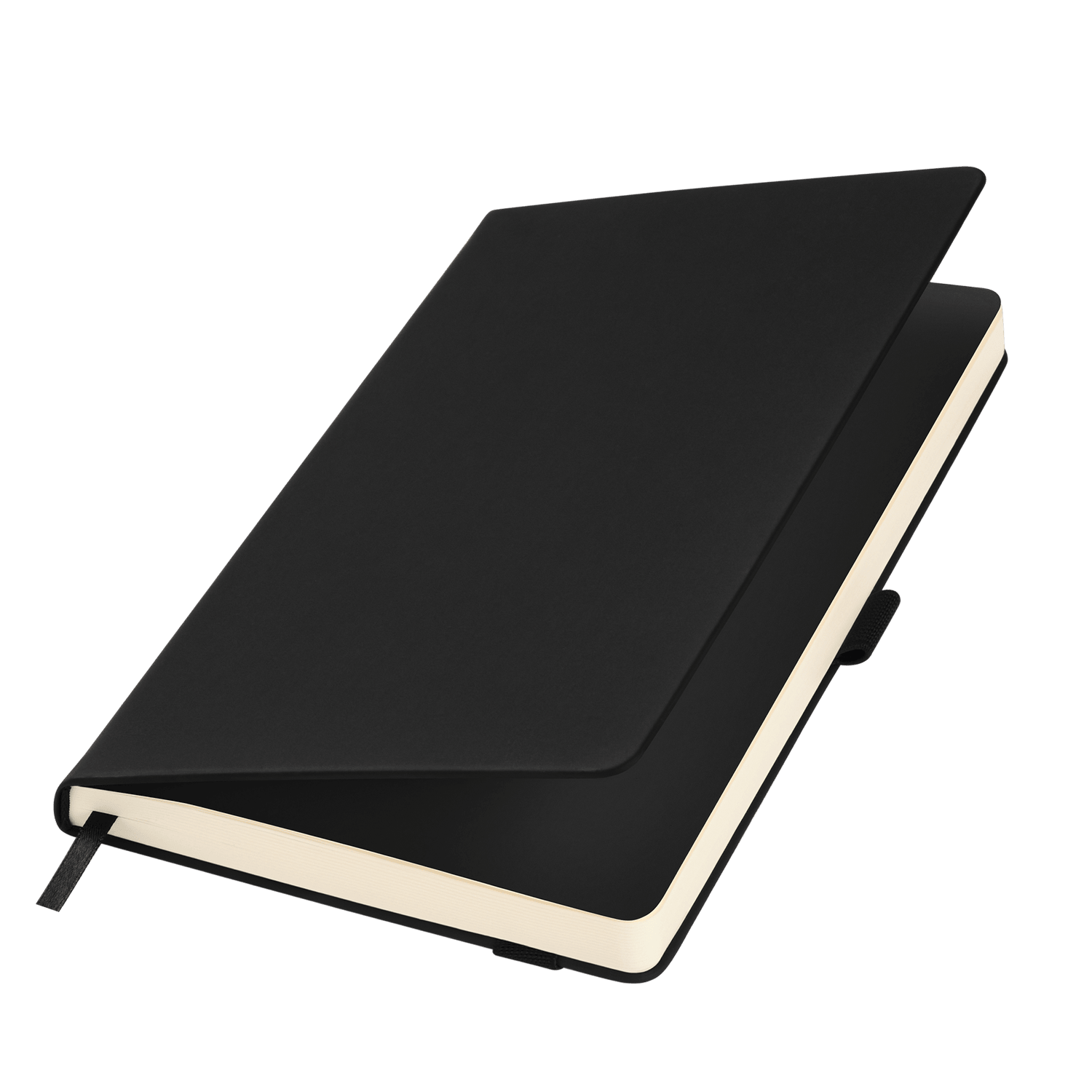 • Вертикальная резинка-фиксатор с вставкой из ПУ-материала обложки и петелька под ручку, в цвет обложки