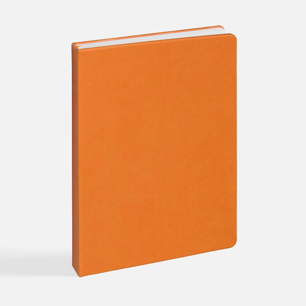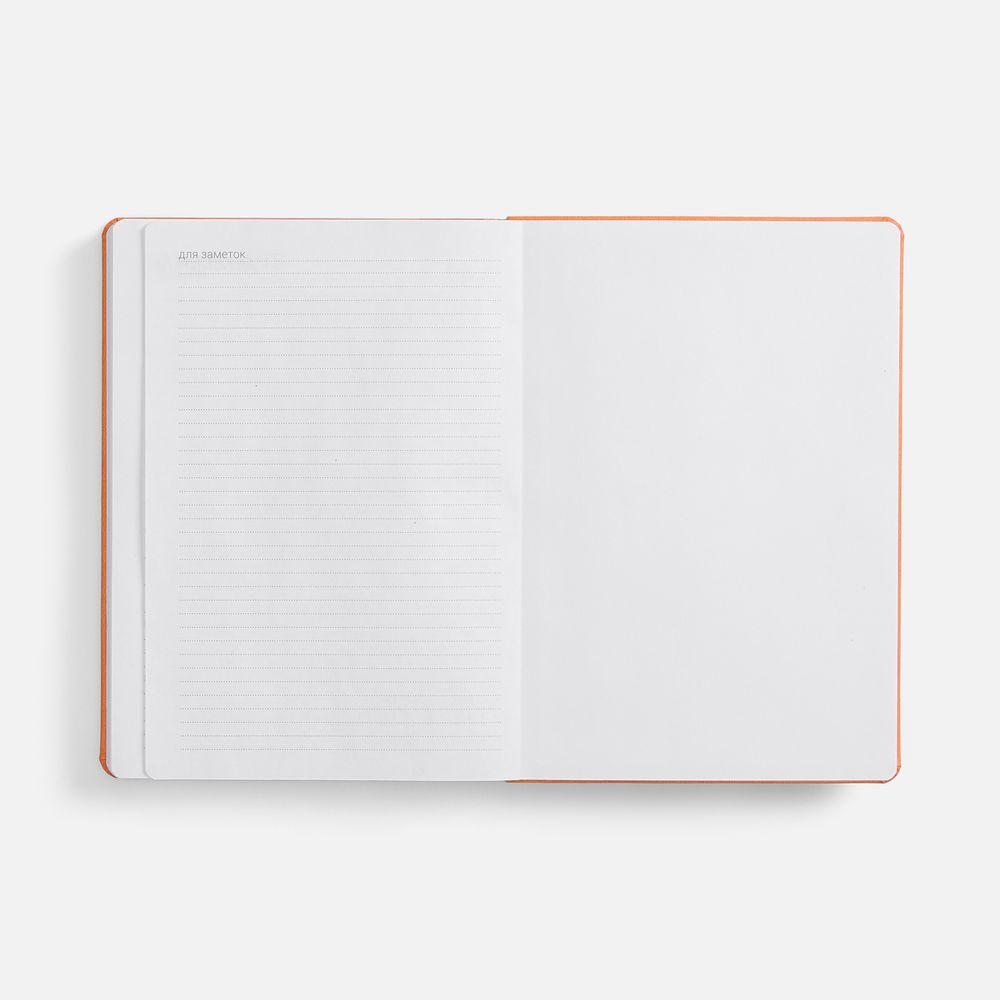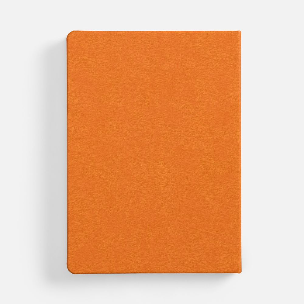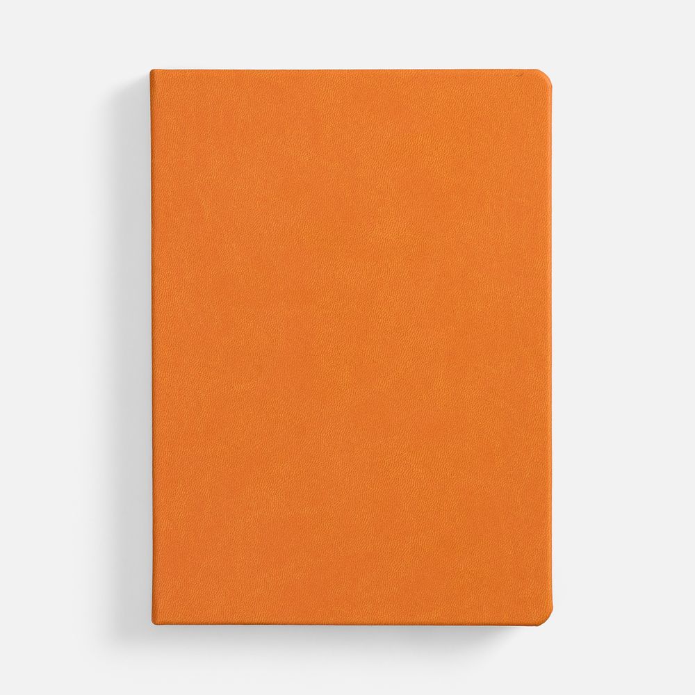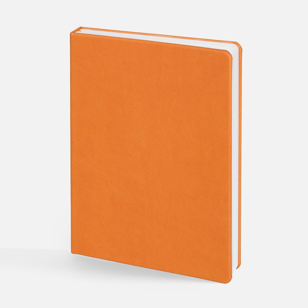 Ежедневник с твердой обложкой, выполнен из материала Latte, оранжевый ОО, дополнен ляссе в цвет обложки.