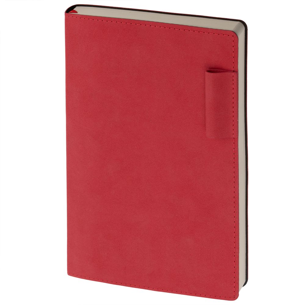 Ежедневник с гибкой обложкой, выполнен из материала Nubuck, красный РР, дополнен петлей-лейблом для ручки и ляссе в цвет материала.