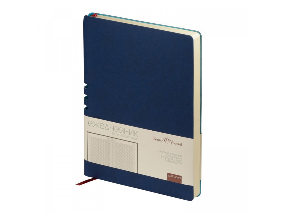 Этот ежедневник вдохновлен солнечными днями и томными ночами Мадрида. И как этот великий город он лишь намекает снаружи на свои тайны. Так, вырубка на спинке – это удобная петля для ручки. Пользоваться этим секретом – одно удовольствие. Недатированный ежедневник Madrid от Bruno Visconti исполнен в благородном темно-синем цвете. Гибкая обложка с покрытием Soft-Touch. Бордовое ляссе выгодно прекрасно сочетается со скругленной обложкой и бежевым блоком. Для изготовления данного ежедневника использована бумага плотность 70 г/м. Справочная информация на 17 страницах. Ежедневник упакован в картонный полукороб и термопленку.