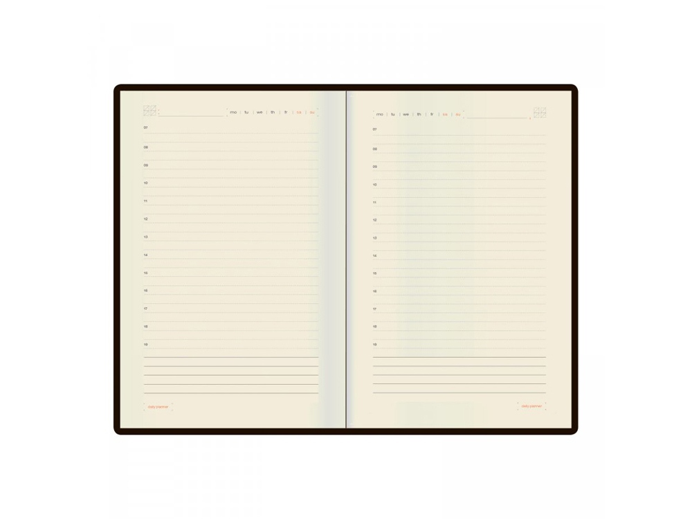 Для удобства ведения записей раздел для планирования имеет линовку с указанием времени (интервал в час) и дополнительным полем для заметок внизу каждой страницы.