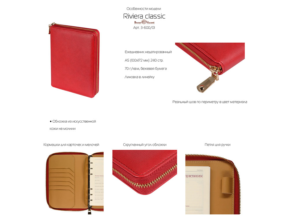 Деловая нежность! Вот как можно охарактеризовать этот очаровательный розово-зефирный ежедневник. Большое отделение на молнии вмещает в себя и сменный блок для записей на кольцевом механизме, и отделения для визиток и ручки. В этом бизнес-аксессуаре поместятся и дополнительные документы и смартфон.