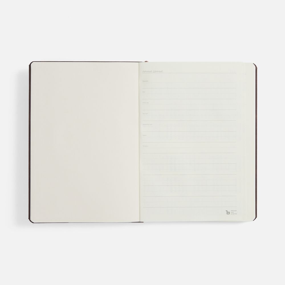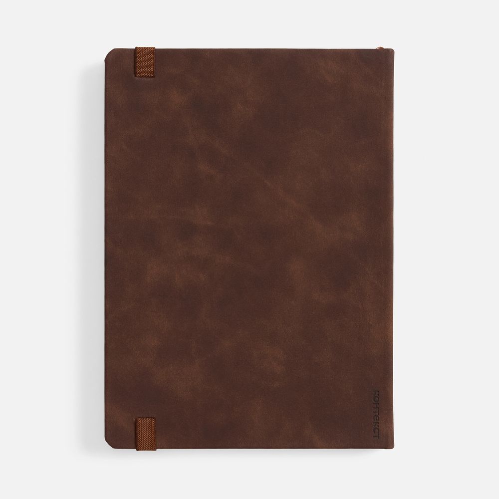 Ежедневник с твердой обложкой, выполнен из материала Nubuck Touch, темно-коричневый ZZ, дополнен ляссе темно-коричневого цвета.