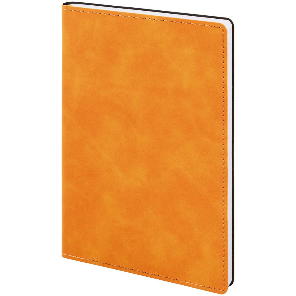 Ежедневник с гибкой обложкой, выполнен из материала Nubuck Touch, оранжевый OO, дополнен ляссе в цвет обложки.