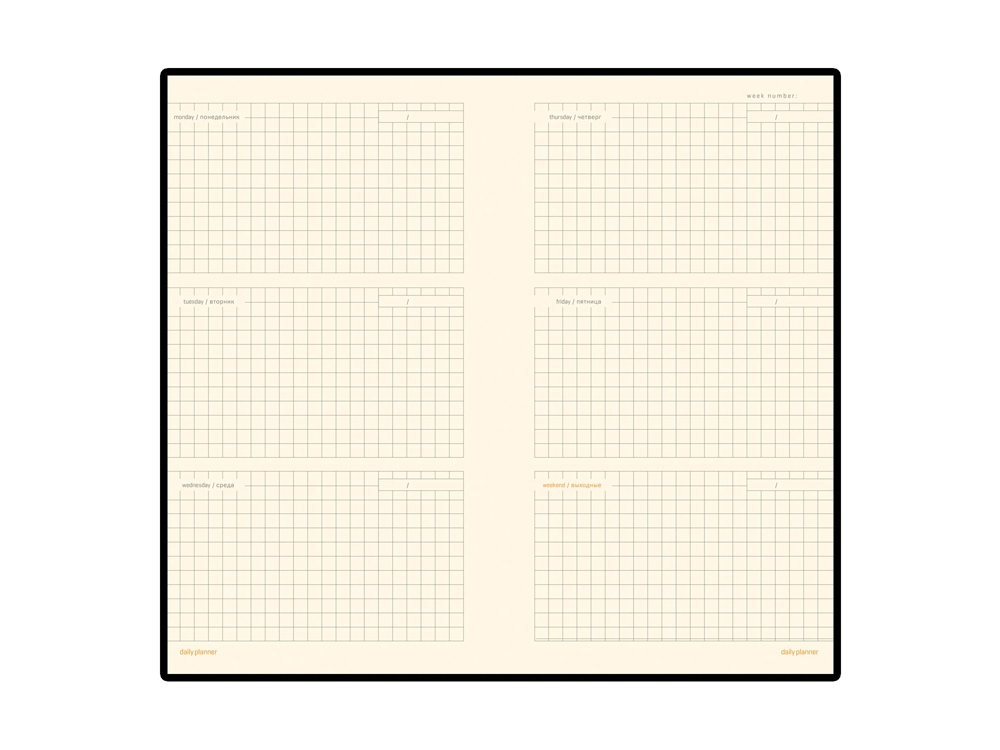 Удобный практичный недатированный еженедельник в мягкой обложке из прочного переплетного материала. Контрастная прострочка белыми нитками по периметру привлекает внимание к изящной форме обложки с закругленными уголками. Обложка украшена металлическим шильдиком. Линовка блока — клетка, с указанием дней недели. Карманный формат этого еженедельника позволяет эффективно вести записи на выездных совещаниях, переговорах и встречах. Готов к персонализации.