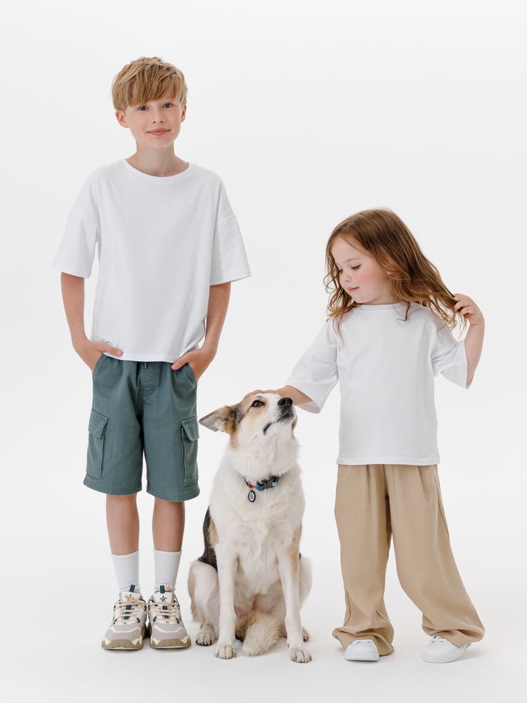 Детская футболка оверсайз из гребенного хлопка с эластаном не стесняет движений и создает модный силуэт.